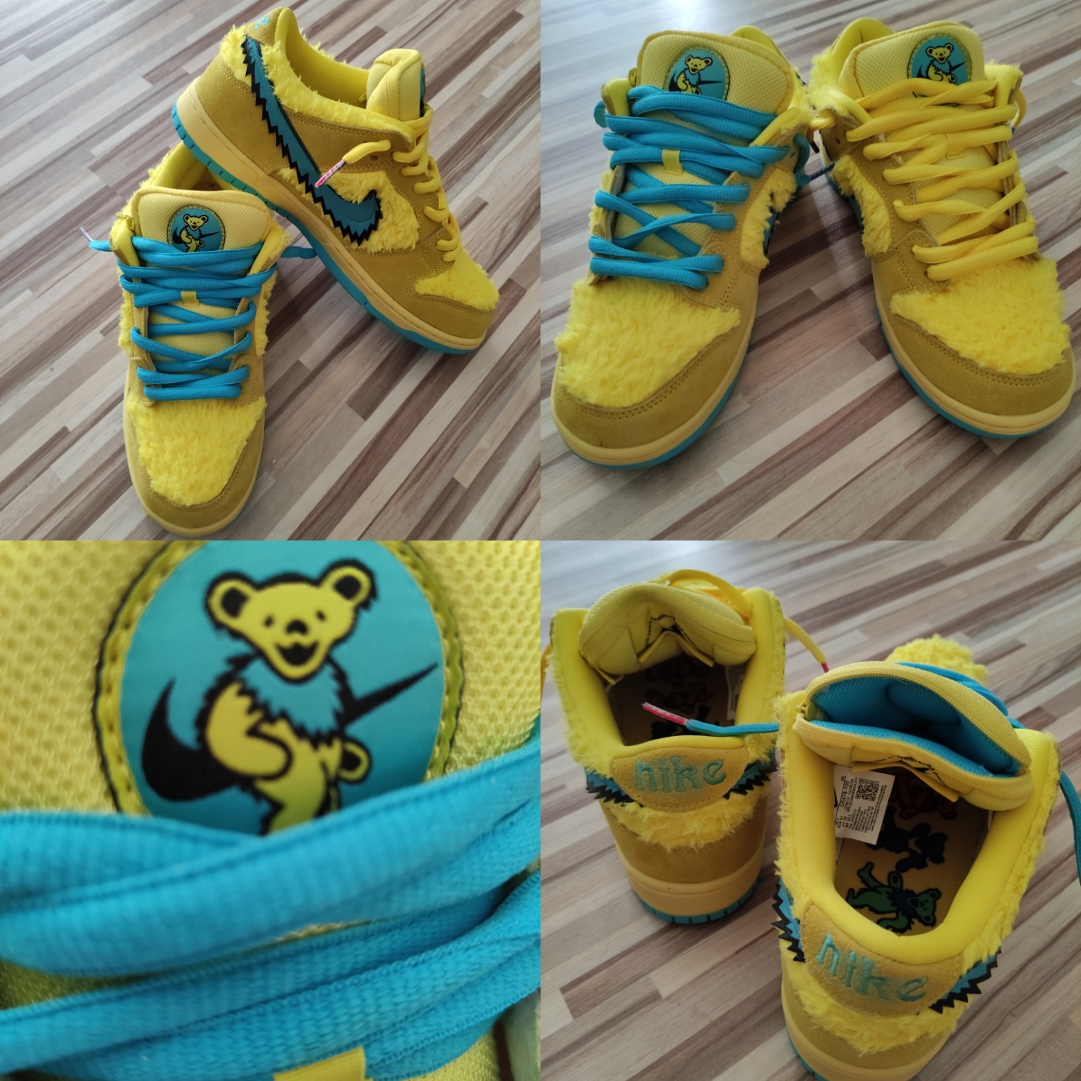 Nike Skateboarding teamed up with legendary psychedelic rock band Grateful Dead to release the Nike SB Dunk Low Grateful Dead Bears Yellow. The design theme of this collaboration pays homage to the Grateful Dead Bears, a series of stylized dancing bears illustrated by Bob Thomas on the back cover of the album History of the Grateful Dead, Volume One (Bear’s Choice) in 1973.The SB Dunk Low Grateful Dead Bears Yellow features a fuzzy yellow faux-fur upper with suede overlays and a jagged Swoosh to represent the stylization of the bear’s chest fur. A hidden stash pocket is featured inside the tongue that is perfect for extra storage. A yellow midsole, blue outsole, and signature Grateful Dead branding on the tongue complete this euphoric design. Now available on Luckick.shop